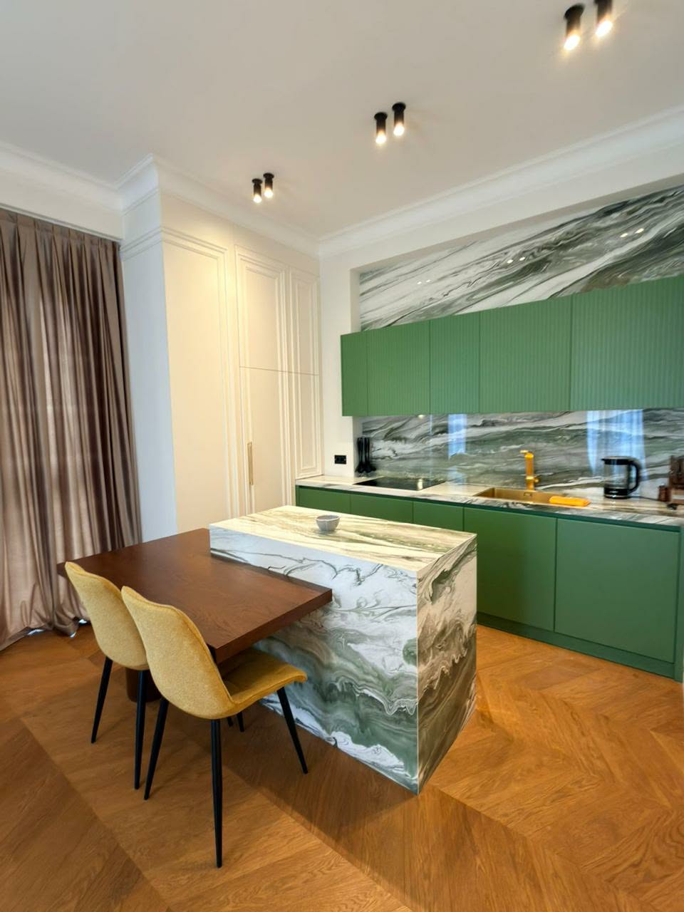 ბინა გამოირჩევა პანორამული ხედებით, უხვი ბუნებრივი განათებითა და იდეალურად დაგეგმილი სივრცით. ინტერიერი შესრულებულია თანამედროვე, დახვეწილი დიზაინით და პრემიუმ მასალებით.