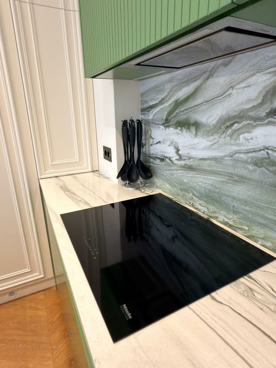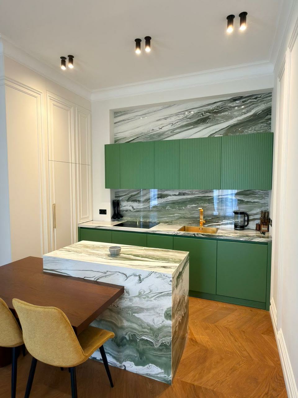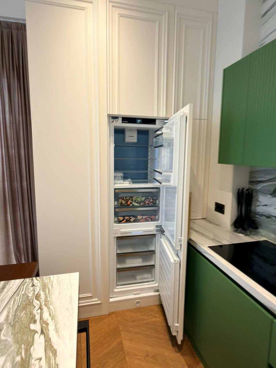 ბინა სრულად აღჭურვილია მაღალი კლასის Miele ტექნიკით — ჩაშენებული მაცივარი, ინდუქციური ქურა, ღუმელი და ჭურჭლის სარეცხი მანქანა. გათბობა უზრუნველყოფილია იატაკქვეშა და ცენტრალური სისტემით. გამოყენებულია სამშრიანი პარკეტი და იტალიური პრემიუმ ფილები.