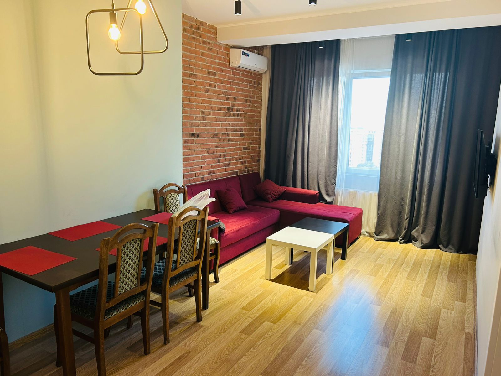 კრწანისში ახალაშენებულ კორპუსში ქირავდება 3 ოთახიანი გარემონტებული ბინა, სტუდიო, 2 საძინებელი, 1 სველი წერტილით, აივნით, ხედით, ცენტრალური გათბობით, კონდიციონერით, ყველა საჭირო ავეჯით და ტექნიკით, ფასი: 750$ (პირველი და ბოლო თვის გადახდით)